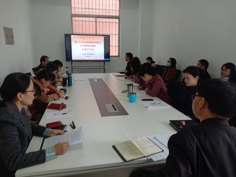 11月18日下午,马克思主义学院直属党支部召开专题学习会,贯彻部署第二十七次全省高校党的建设工作视频会议精神,会议由直属党支部书记蒋科星主持。