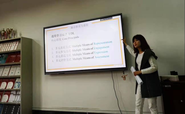 课后,学院领导和学前教育专业的教师针对学前融合教育课程作为双语授课的可行性、教材选择以及授课内容等方面进行了讨论。一致认为,周易老师的双语课英语熟练、表达准确,可以在卓越班学前融合教育课程的授课中试行,同时也需要进一步提高学生的专业英语水平以及直接使用英语从事科研的能力,以更好地适应社会的需求。(周易)