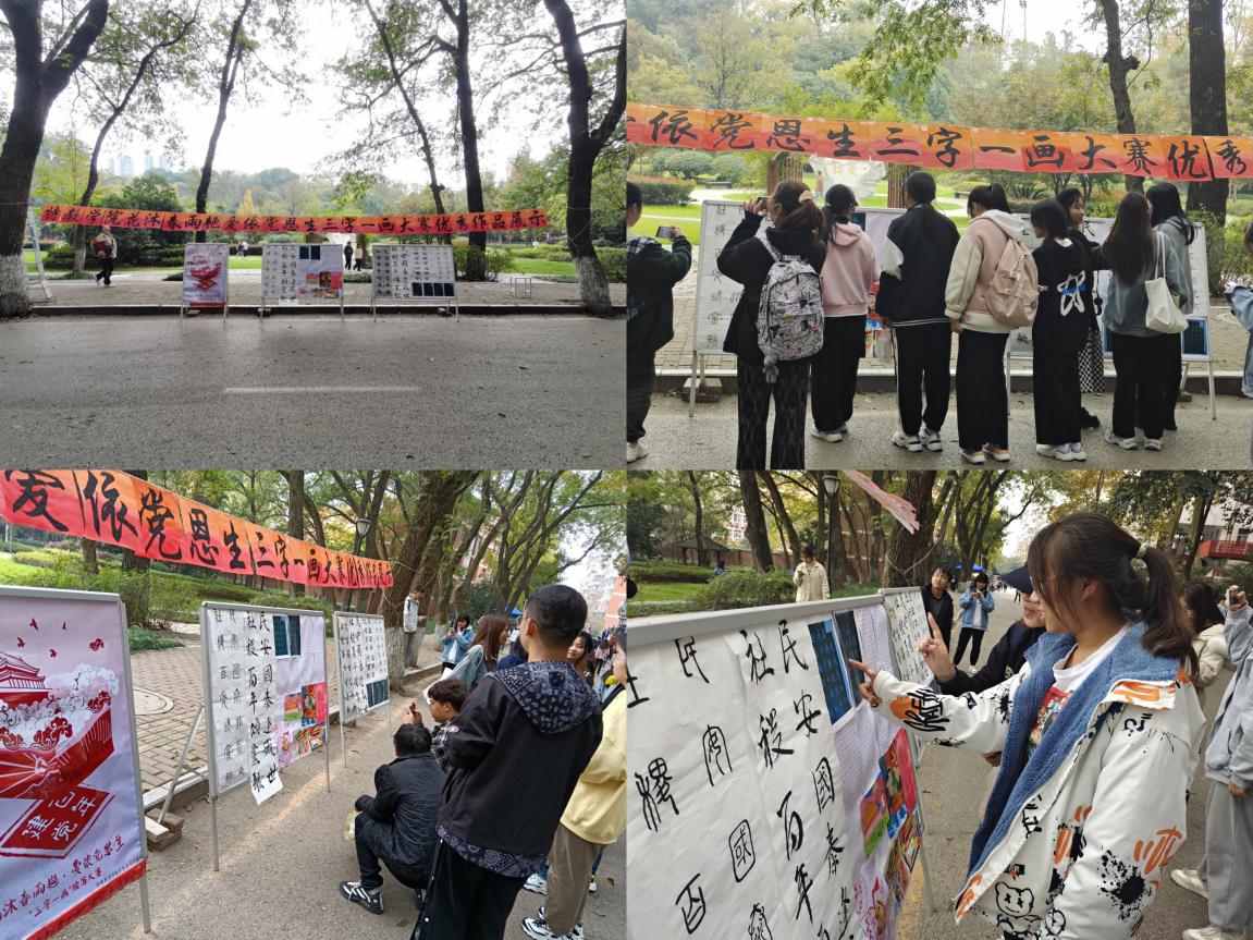 经过激烈角逐,最终选出获奖作品,并于11月17日在学校林荫道进行作品展示。落叶飘飞,墨香弥漫,在环绕大自然气息的林荫道旁,学院向全校师生呈现了一场视觉盛宴,过往的人群纷纷驻足欣赏,完全沉浸于书香世界