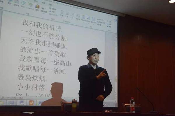 简单的手语练习后,郭老师带领学生们系统学习了《我和我的祖国》歌曲的手语舞蹈。在音乐的伴奏下,郭老师逐字逐句地教授歌词的手舞表达,耐心细致地纠正同学们的错误,不厌其烦地和学生们反复练习,直至现场的每位同学都学会用手语演绎《我和我的祖国》。讲座的最后,摄像机记录了郭老师与同学们站在一起,共同打出手语舞蹈的温馨一幕。