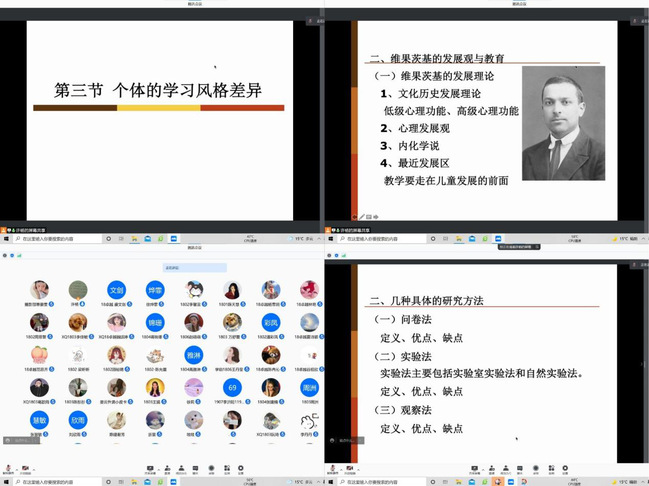 许杨老师向大家介绍了教育心理学的主要内容,接着她对这门课程的结构进行具体讲解,使得同学们对知识体系有更为整体的把握。就考试题型,许杨老师与同学们展开讨论,以讲解例题、介绍各研究方法优缺点的方式指出考试重点,对同学们进行了细致的指导,同时也在线解答了同学们关于考研的诸多困惑。接着,许杨老师对每一章节都进行了详细的讲解,抓住每一个小知识点,弥补同学们在细节上的空缺。最后,许杨老师总结了讲座的主要内容,向同学们表达祝福,希望同学们在即将到来的考研考试中斩获佳绩,取得成功。