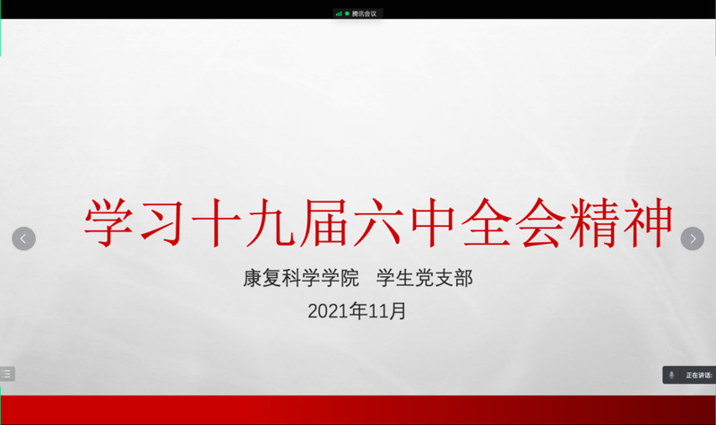 11月24日,康复科学学院学生党支部组织全体党员在线上学习党的十九届六中全会精神,集中观看了党的十九届六中全会精神相关解读视频。