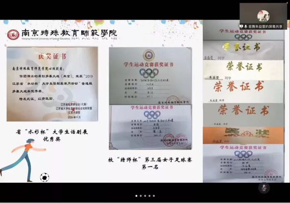 朱益萱同学,她在分享时讲到“一分耕耘一分收获”。她通过自身努力,荣获优秀团员、优秀团干等称号。在校综合素质测评中多次获得第一,并获得校一、二等奖学金、普通话二甲、小学音乐教师资格等多种证书。