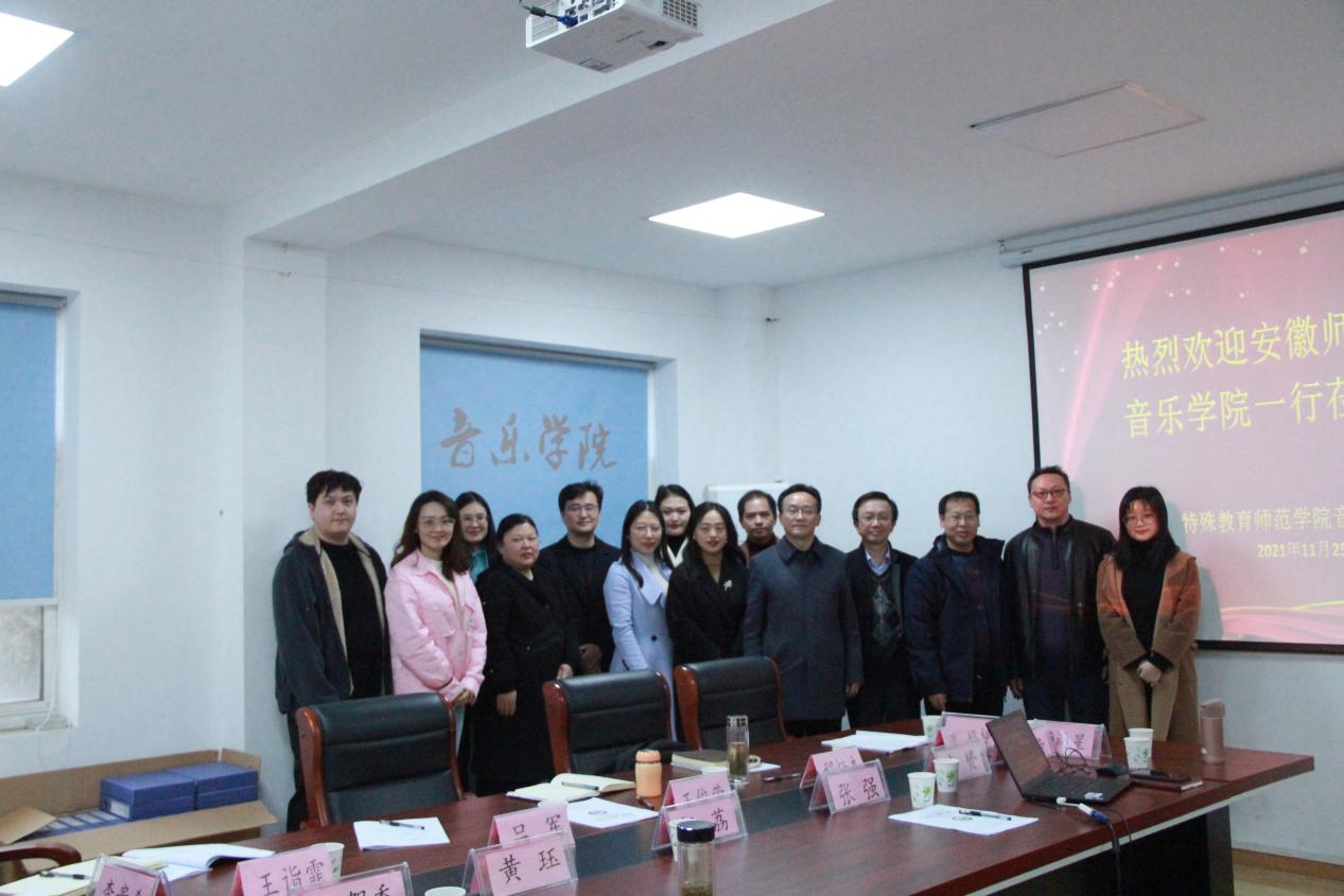 交流会上,张强副院长就学校校史、院情和学院各专业发展特色进行了介绍。党总支书记杨荔、副书记黄珏就学院视障学生的生活、学习、帮扶以及我校在围绕“做亮融合教育”等相关工作方面的特色作了重点阐述。与会双方就学生实习、就业等相关方面情况展开了交流,安徽师范大学音乐学院一行分享了安徽师范大学在人才培养方面的创新举措和经验。会后,音乐与舞蹈学院党政陪同与会人员共同参观了我校的音乐治疗实验室、舞动治疗实验室等相关教学场地设施。