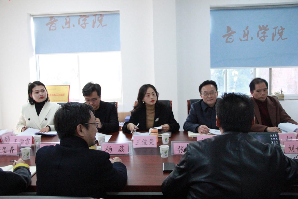 11月25日下午,安徽师范大学教务处教务科科长吕军、音乐学院党委副书记王俊荣、教学副院长程炳杰、教务秘书梁超以及2021级辅导员王诣霏一行来到音乐与舞蹈学院就视障学生日常教学管理工作进行考察交流。我校教务处副处长李贵希、教学运行科副科长笪笑、音乐与舞蹈学院党政班子成员、各系室主任以及学院部分教职工参加调研会,会议由副院长张强主持。