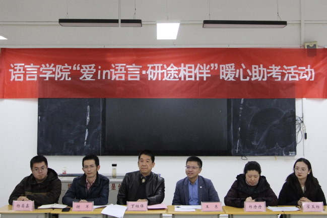 为扎实开展“两在两同”建新功行动,在全国硕士研究生入学考试即将来临之际,为帮助考研学生解决实际困难,增强信心、舒缓压力。12月3日下午,语言学院开展“爱in语言·研途相伴”暖心助考活动。语言学院党总支副书记丁祖保、执行院长王东和各位辅导员出席了本次助考活动。活动由学院党总支副书记谢军主持。