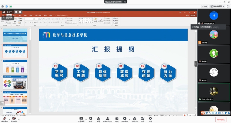 为了做好本科教学合格评估各项工作,12月3日下午,数学与信息科学学院邀请江苏第二师范学院数学与信息技术学院院长朱辉生作本科教学合格评估解读讲座,该院全体教职员工通过网络参加了讲座。会议由院长胡作进主持。