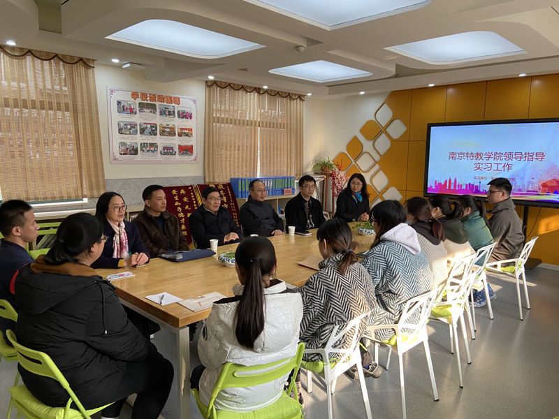在南京育智学校,王淑琴校长介绍了我校10名特殊教育专业学生的实习情况,充分肯定我校学生在实习中的优良表现。该校带教老师反映我校实习生专业素养扎实,有博爱情怀、态度认真、作风踏实、积极主动,能适应实习岗位的要求。我校实习生的师范技能和素养逐年提高,给学校带教老师们留下深刻印象。座谈会上,实习生们结合自身情况汇报实习中的角色转变、认识体会和成长收获,纷纷表示实习学校的老师带教、实践和校园氛围让同学们受益良多。