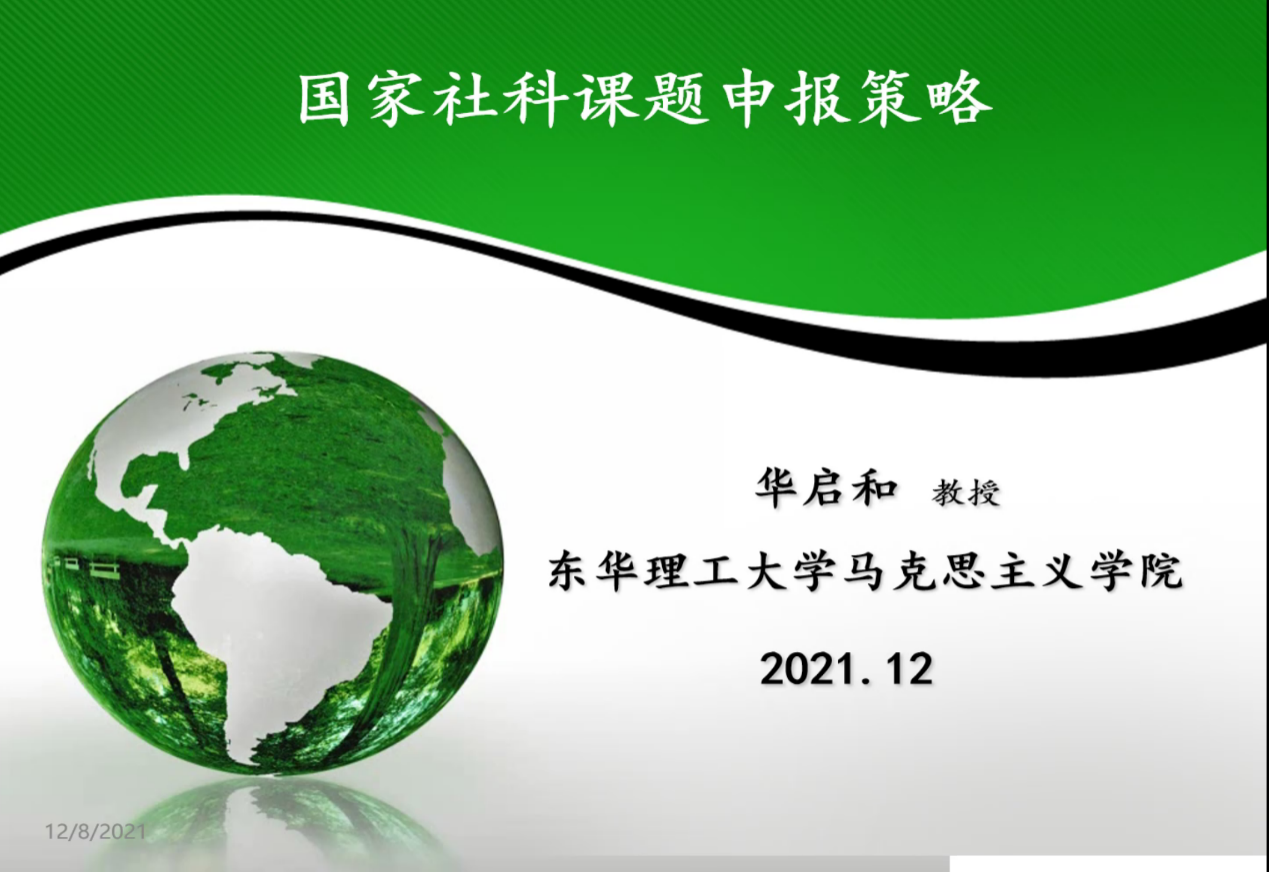 12月8日晚,马克思主义学院、科研处和习近平新时代中国特色社会主义思想研究中心邀请东华理工大学马克思主义学院党委书记华启和教授在腾讯会议开展了一场题为《国家社科课题申报策略》的精彩讲座,讲座由马克思主义学院涂平荣院长主持。