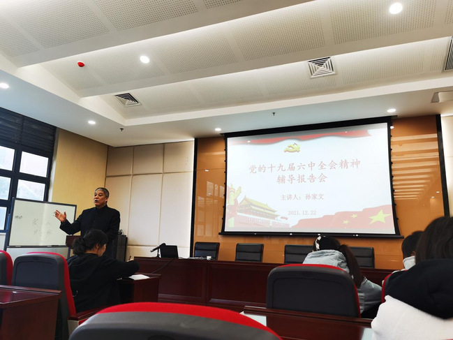 12月22日下午,中国特殊教育博物馆孙家文老师为体育学院全体师生作了党的十九届六中全会精神辅导报告会。本次报告会由体育学院直属党支部书记张启昕主持。