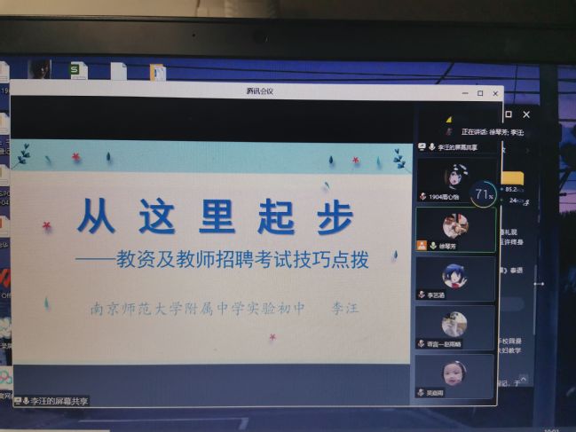 12月20日晚,语言学院举办以“从这里起步——教资及教师招聘考试技巧点拨”为主题的线上讲座。讲座邀请南京师范大学附属中学实验初中李汪校长,对即将参加教师招聘考试和教资面试的2018级和2019级师范生进行辅导和答疑。