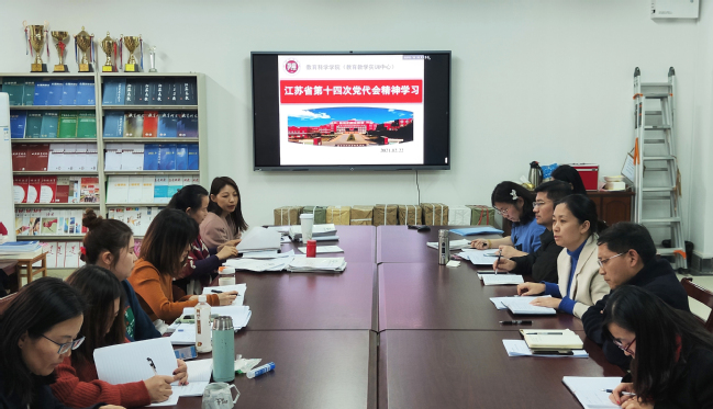为全面落实党的十九届六中全会精神,围绕“强富美高”总目标,“争当表率、争做示范、走在前列”总要求,深化“两聚一高”新实践,同时加强基层党组织建设,时刻把握党建工作方向,提升教师党员素质能力。教育科学学院于12月22日召开江苏省第十四次党员代表大会精神学习会,全体教师党员参加。
