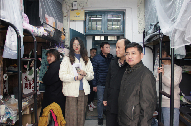 检查组一行深入学生宿舍,逐一查看同学们的住宿设施,了解同学们的适应程度,并仔细询问他们的学习生活情况。检查组对宿舍的文化装饰提出建议,要求同学们重视宿舍的学风建设,文明张贴格言警句,营造良好的学习氛围,鼓励宿舍同学在学习上互相帮助、齐头并进,保障良好学风的形成。检查组一行嘱咐同学们早睡早起,加强体育锻炼,养成健康的生活习惯,注意个人卫生、及时开窗通风,重视宿舍整体风貌。针对冬季宿舍安全用电问题,检查组叮嘱同学们注意用电安全,不使用大功率电器。检查组成员认真检查学生宿舍楼道里的电箱、电线等设施,防患于未然。在检查走访18栋学生宿舍时,检查组发现水龙头滴水情况,细心向学生们讲解如何申报维修,并及时向相关维修管理人员反映问题。此外,检查组成员重点叮嘱同学们要提高防诈骗意识,捂好自己的钱袋子,警惕各种骗局。