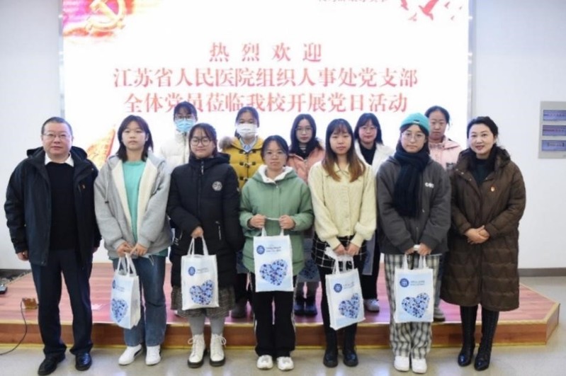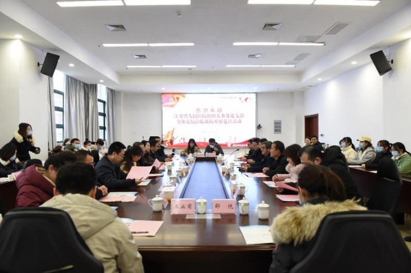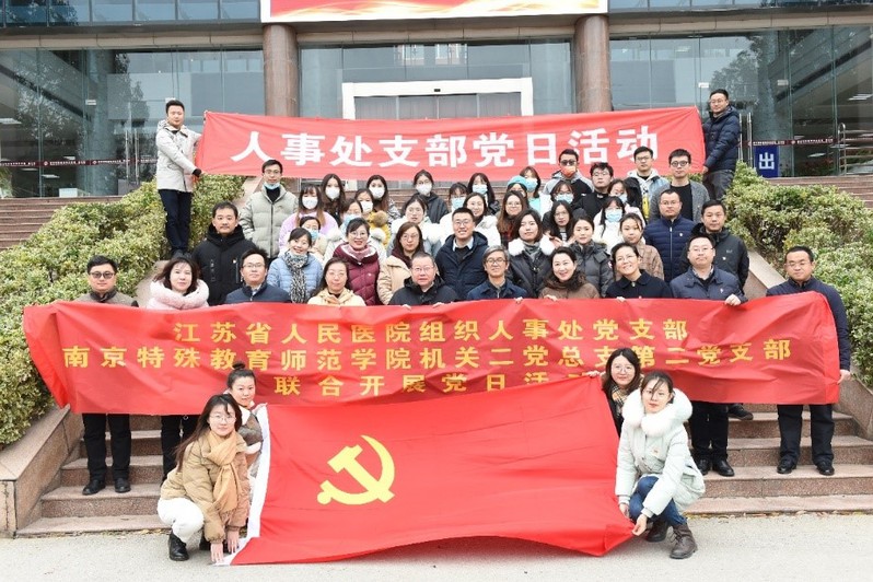 为推动党史学习教育走深走实,充分发挥党员先锋模范作用,12月25日,机关二第二党支部与江苏省人民医院组织人事处党支部联合开展“我为群众办实事”主题党日活动。党委常委、副校长谭忠,党委常委、党委组织部部长张金福,行政办公室、人事处、学工处和团委主要负责人及人事处党支部全体党员共同参加本次党日活动。