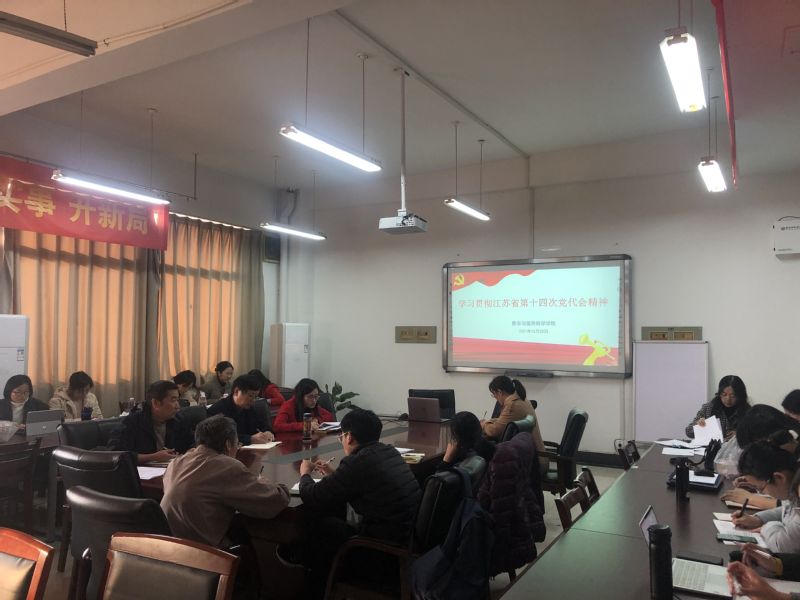 12月22日下午,数学与信息科学学院召开全院教师大会,传达学习贯彻江苏省第十四次党代会精神,党总支副书记丁雯传达并领学会议精神。