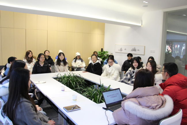 为深入开展大学生心理健康教育工作,培养出一支素质高、能力强的心理委员队伍。12月27日中午,语言学院邀请学生工作处心理健康教育中心副主任严茹开展心理健康教育主题沙龙。活动由学院党总支副书记谢军主持,辅导员翟玉杨、何江岳以及学院各班级心理委员参加。