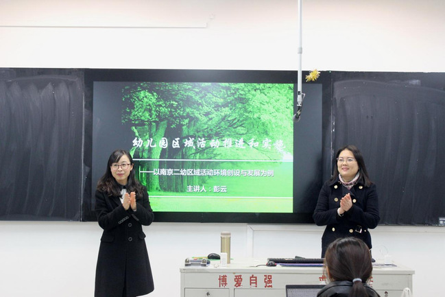 为贯彻习近平总书记提出的“四有”好老师标准,进一步加深同学们对幼儿园活动的理解,教育科学学院于12月23日举行19级卓越班导师讲座。本次讲座由教育科学学院副院长张丽莉主持,南京第二幼儿园园长彭云老师主讲,19级卓越班同学积极参加。