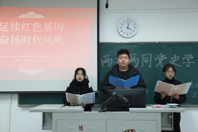 为了庆祝中国共产党成立一百周年,积极开展“两在两同”建新功行动,践行“同人民想在一起、干在一起,风雨同舟、同甘共苦,在现代化新征程上建新功”的伟大号召,教育科学学院于12月26日举办“两在两同”建新功与党史学习教育朗诵比赛,本次比赛由学院学生会办公室部主持,学生会各部门部长出席,大一学子积极参与。