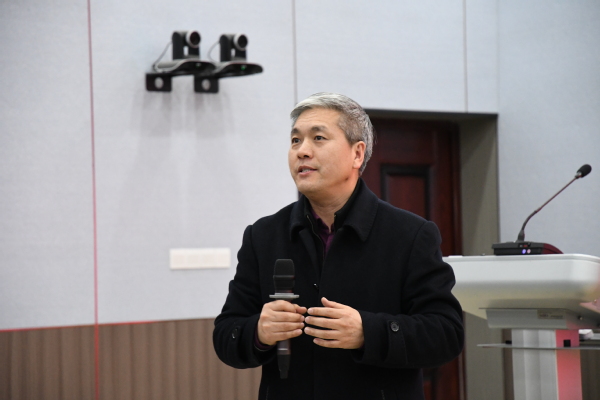 杨会良院长致辞,他指出,管理学院已经举办了三届教学大赛,经过比赛,青年教师不断地涌现出来,展现风采,这已经成为促进青年教师尽快成长的重要平台。通过这样的形式,我们搭建起了舞台,能够使更多的教师潜心教学,在教学上投入更多的精力和身心,让教育教学质量提高更快、提升更好。今天举办的第四届教学大赛,就是要切实推动教师恪守一个原则:站好三尺讲台;坚持两个根本:教师以教学为根本,教学以学生为根本;把握好三个要素:一是保持良好教学态度,二是练好教学基本功,三是树立符合时代需要的教育思想和教学观念,深入把握学生成长规律和教学规律,与信息技术完美融合,同时不忘记教学之本,加强师生间的互动,实现师生之间思想与思想的碰撞,心灵与心灵的交流,生命与生命的对话,情感与情感的交融。希望参赛教师在比赛中赛出水平、赛出风采。
