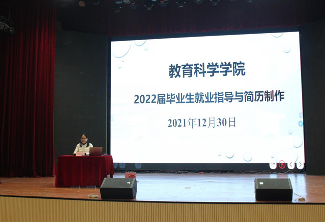 为了贯彻国家就业相关政策,提高毕业生的就业竞争力,推进教育事业的发展,教育科学学院于12月30日晚举办2022届毕业生就业指导与简历制作大会。本次会议由教育科学学院组织员李国敏老师主讲,党总支书记吴月华、党总支副书记吴兴、学工办主任汪亮巧及全体辅导员出席,18级全体同学积极参与。