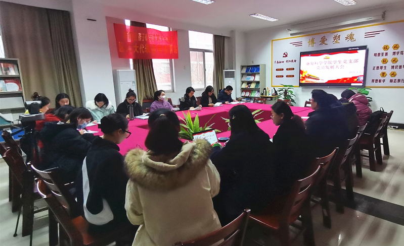 1月5日,康复科学学院学生党支部召开党员发展大会。参加会议的有康复科学学院党总支书记吴洪菊、党总支副书记吴填、学生党支部全体党员及入党介绍人,会议由学生支部书记王雪梅主持。