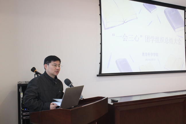 为更好地总结本学期团学组织工作,推动“一会三心”团学组织的进一步发展,教育科学学院于1月7日举行“一会三心”团学组织期末总结大会。大会由“一会三心”主席团李泽玟主持,教育科学学院党总支副书记吴兴、团总支书记(学工办副主任)汪亮巧、辅导员李维翔、余宛琳出席本次会议,“一会三心”全体人员参加。