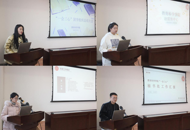 教育科学学院“一会三心”团学组织分为学生会、融媒体中心、青年志愿者活动中心和实践中心,各部门优势互补、相互配合,有条不紊地开展学院各项学生工作,成绩斐然。会议伊始,各部门主要负责人对本学期的工作进行总结,反思工作的不足,分享工作经验,并介绍下学期的工作计划,明确各部门下一步工作思路和努力方向,为学院团学组织工作的发展提出更多更好的建议和规划。