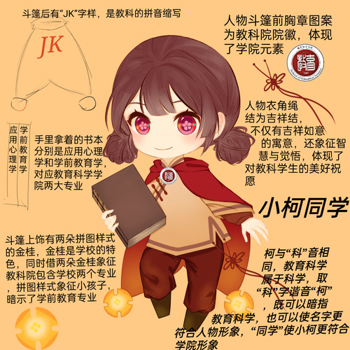 “奇思妙想 笔绘教科” Q版人物形象设计比赛。梦想是点燃生命之火的催化剂,而学校则是孕育梦想的摇篮。在南京特师的学习与生活中,大家笑过、累过,为了知识披荆斩棘,见证自己的一步步成长。在这些朝夕相伴的岁月中,每个人心中都孕育出自己独一无二的南京特师。那一个个活泼可爱又不失机灵聪慧的Q版人物,表现了教科学子们的奇思妙想与活跃创造能力,更增强了同学们对于学校和学院的归属感与自豪感。