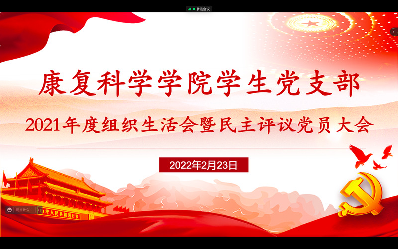 2月23日下午,康复科学学院学生党支部通过线上平台召开2021年度组织生活会和民主评议党员大会,全体支部党员参会,支部组织委员孔迪主持会议。