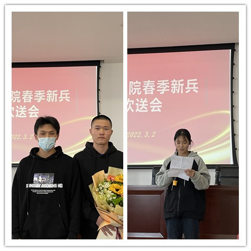 “无奋斗不青春”。当青春遇上迷彩,当奋斗融入军旅,踏上新的征程,怀揣着憧憬与期待,3月2日下午,体育学院举行2022年春季预定新兵入伍欢送会。体育学院直属党支部书记张启昕、体育2101班班主任麻晨俊、体育学院团总支副书记屈文文出席。
