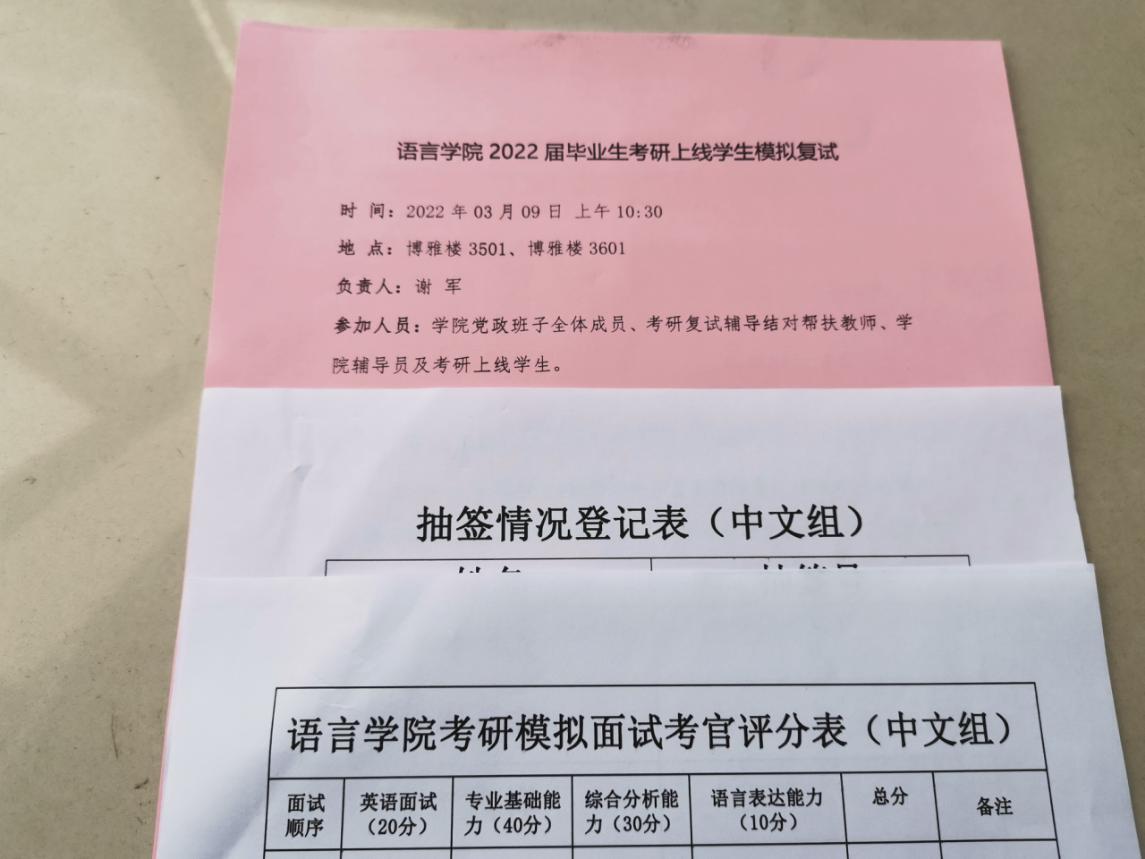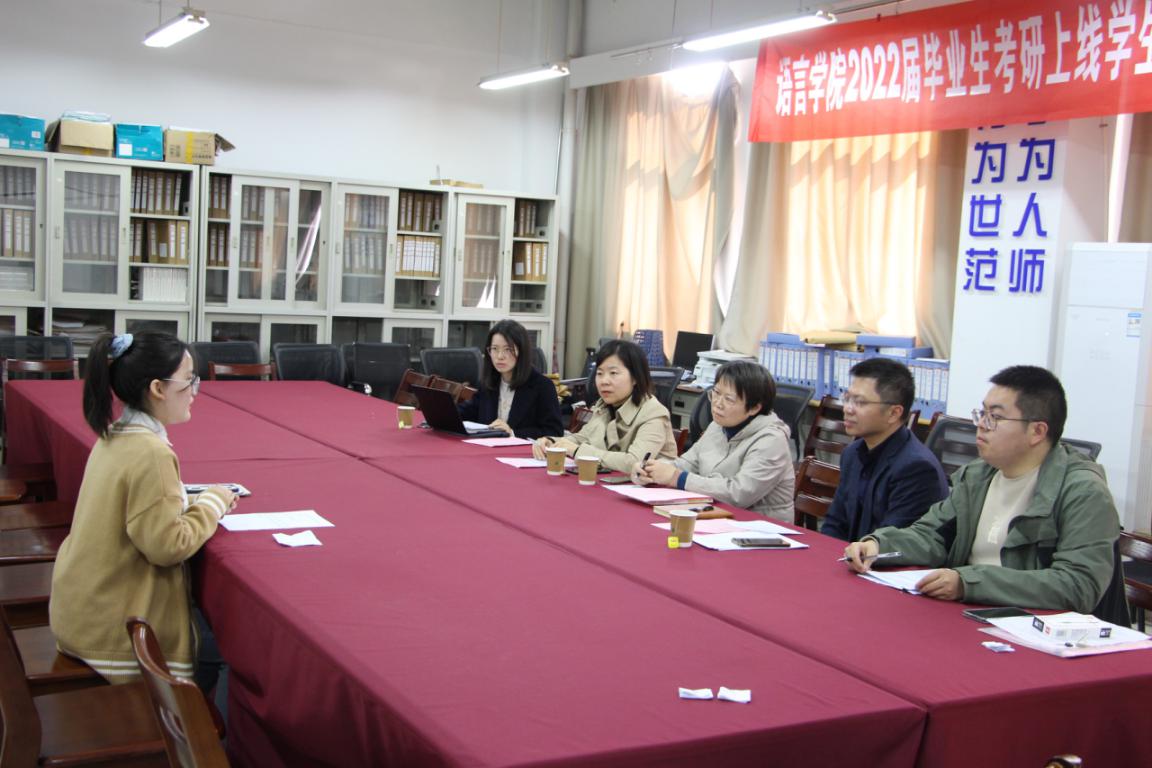 3月9日上午,语言学院举办2022届毕业生考研上线学生模拟复试暨辅导座谈会。学院党政班子全体成员、考研复试结对帮扶教师、辅导员及考研上线学生参与本次活动。