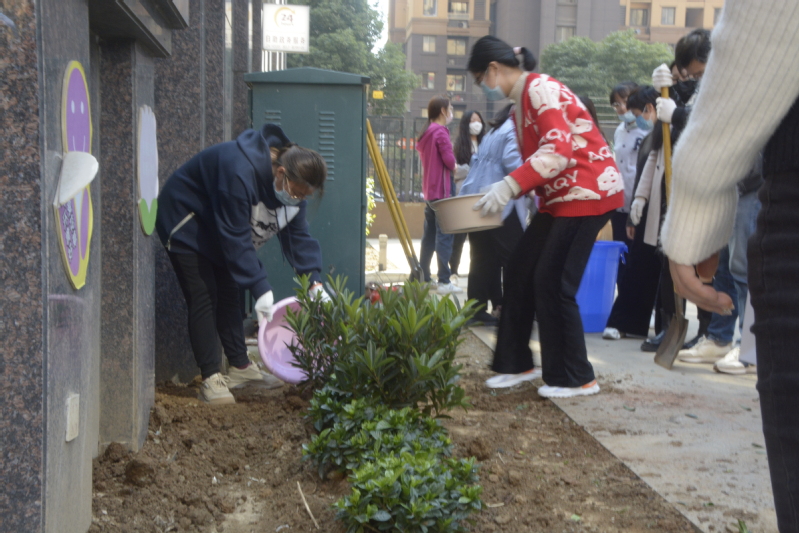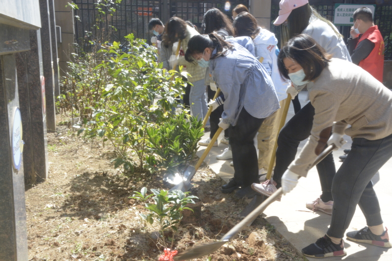 迎着和煦的春风,教师党员、学生党员和残障人士亲切交流,认真倾听他们的心声,了解他们的实际困难,气氛融洽欢快。然后大家手拿着铁锹一起走到植树地点,分工合作,互相配合,有的挥锹挖坑,有的扶苗填土,有的夯土浇水;大家齐心协力把一棵棵树苗接连种下,每一道工序都那么一丝不苟,每个人的脸上都写满了认真、欣喜和期待,现场一片热火朝天的景象。经过大家的共同努力,一棵棵充满生机和希望的树苗在春风里摇曳,好像在向园丁们频频致敬。不久的将来,它们一定会长成参天大树。