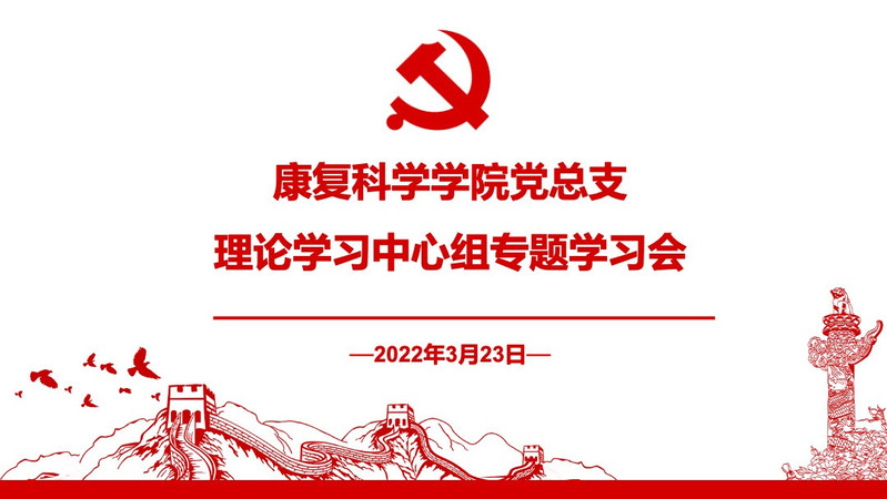 3月23日,康复科学学院党总支召开理论学习中心组学习会,专题学习习近平总书记在2022年两会期间重要讲话精神和全国两会精神。康复科学学院党总支书记吴洪菊主持会议。