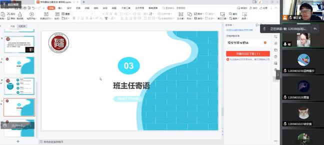 本次学风建设主题班会圆满结束。山再高,往上攀总能登顶;路再长,只要走下去总会到达。希望同学们在今后的学习生活中能保持认真严谨的学习态度,进一步强化学风建设,充实地度过四年的青春时光,勇担历史责任,做新时代有为青年!(文/余宛琳 柳涵 编辑/余宛琳 审核/吴月华 杨黎珍)