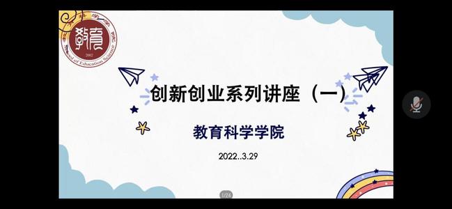 为了贯彻落实“释放全社会创新创业创造动能”理念,弘扬创新创业文化,激发青年大学生创新创业的热情,帮助同学们了解大学期间创新创业的相关竞赛。教育科学学院于2022年3月29日举行创新创业线上培训讲座,本次讲座由数学与信息科学学院樊琬老师主讲,教育科学学院团总支书记(学工办副主任)汪亮巧老师主持,20、21级各班科创委及申报本次大创项目的所有同学参加。