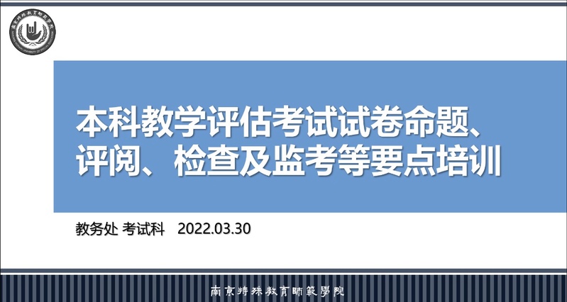 教务处考试科朱涵以“本科教学评估考试试卷命题、评阅、检查及监考等要点”为主题,从课程考核管理办法的文件解读、试卷归档材料检查中常见问题的整理和监考教师职责等三个方面展开培训。培训就考试成绩登记表、平时成绩登记表、试卷分析报告、考场记录表、阅办卡、双向细目表如何规范填写,出卷、阅卷、装订过程中需要注意哪些要点,监考过程中监考教师应该遵循哪些规范等内容给各学院教务秘书和新进教师进行了详细的说明和讲解。