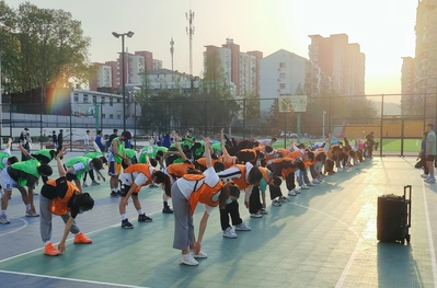 本次定点投篮比赛分为男女生两组参赛,参赛选手严格遵守疫情防控规定,佩戴口罩,服从志愿者安排到达指定位置间隔1米站立,进行赛前热身。在活动指导员的带领下,大家充分舒展身体,为安全比赛做好准备。