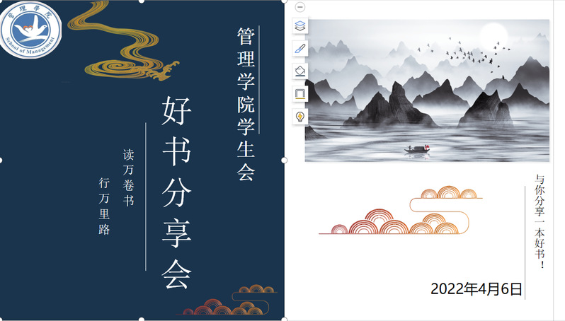 2022年是学校建设合格本科高校的关键之年,根据学校年度工作要点,结合学工处在全校范围内开展“学风建设年”主题实践活动,管理学院学生会于4月6日下午举办了主题为“书香溢满校园 心灵徜徉书海”的线上好书分享会。