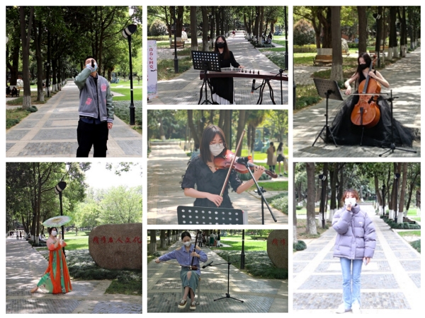 疫情防控期间,为增强校园艺术氛围,驱散疫情的“阴霾”,音乐与舞蹈学院举行了“美育浸润计划——校园舞台实践活动”等系列主题活动,学生党员结合自身专业优势为小舞台积极出谋划策,每日轮流值班让小舞台的节目变得更丰富。他们说:“我们青年应该挺身而出,年轻的生命应该是充满热情和明朗的。”“相信,只要我们勠力同心,我们必会打好打赢疫情防控这场‘战役'。”