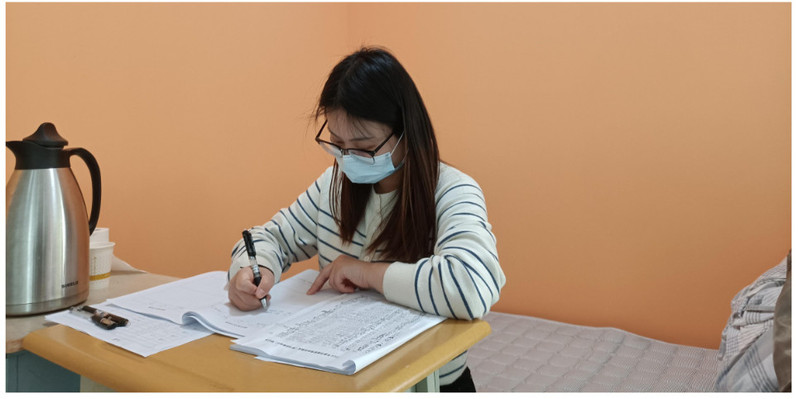 封校期间,音乐与舞蹈学院的吴林烜老师和女孩子们同住一栋宿舍,她深入宿舍关心学生的学习和生活,及时了解学生身心健康、学习状况,解决学生在封控中的各种突发问题,帮助学生调节负面情绪、树立信心,确保学生思想情绪稳定。作为2019级的辅导员,在疫情防控安全教育工作的同时,她也时刻关注学生就业与考研意向,并提醒大家要注意劳逸结合,鼓励同学们在宿舍中做适当运动,缓解焦虑情绪。