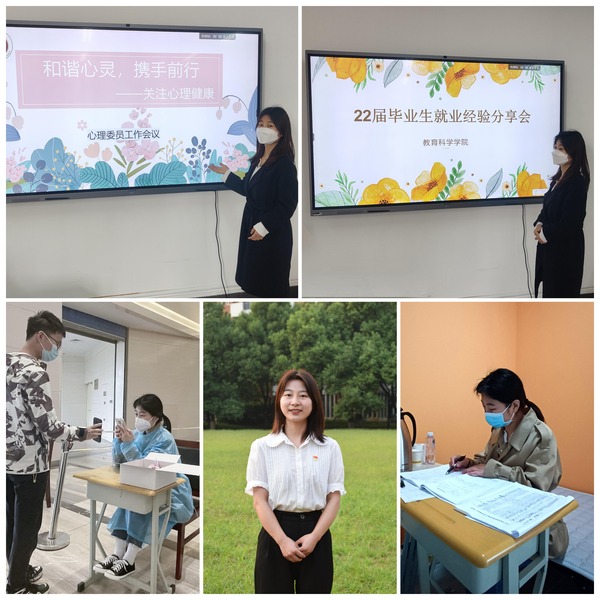 疫情就是命令,抗疫就是责任,教育科学学院江敏老师将抗疫工作细化到每一天的日常管理工作。江老师不定时走访宿舍,查看学生上网课情况。为了帮助同学们更好地了解就业形势,缓解疫情背景下学生的就业焦虑,提升学生就业竞争力,江老师多次组织就业经验分享会,为同学们解答了就业疑惑,提供了宝贵的就业经验。为了加强学生心理健康教育,江老师定期开展心理委员培训,不断提升心理育人工作质量。