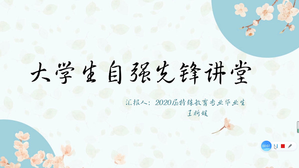 世上无难事,只要肯攀登。近日,我校大学生自强先锋讲堂继续开讲。本次讲堂邀请了2020届特殊教育专业毕业生、现就读于西北师范大学2020级特殊教育专业硕士研究生的王昕媛同学作为主讲人分享经验。