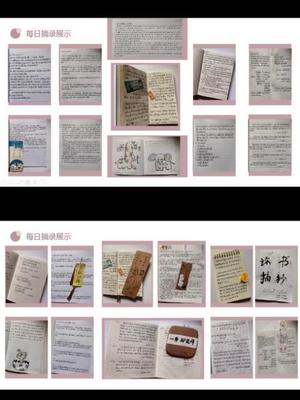 读书会伊始,师生共同欣赏由同学们亲手制作的书签并选出优秀书签进行表彰。结合4月23日“世界读书日”主题,同学们巧妙利用身边材料,制成书签。制作的书签在拍照留念后会由同学们保存,夹在书中发挥书签最大的作用。同学们积极分享近期的每日摘录。“书中自有黄金屋”,通过学习书中榜样的优秀品德,摘录发人深省的名言警句,同学们可以养成更加良好的读书习惯。