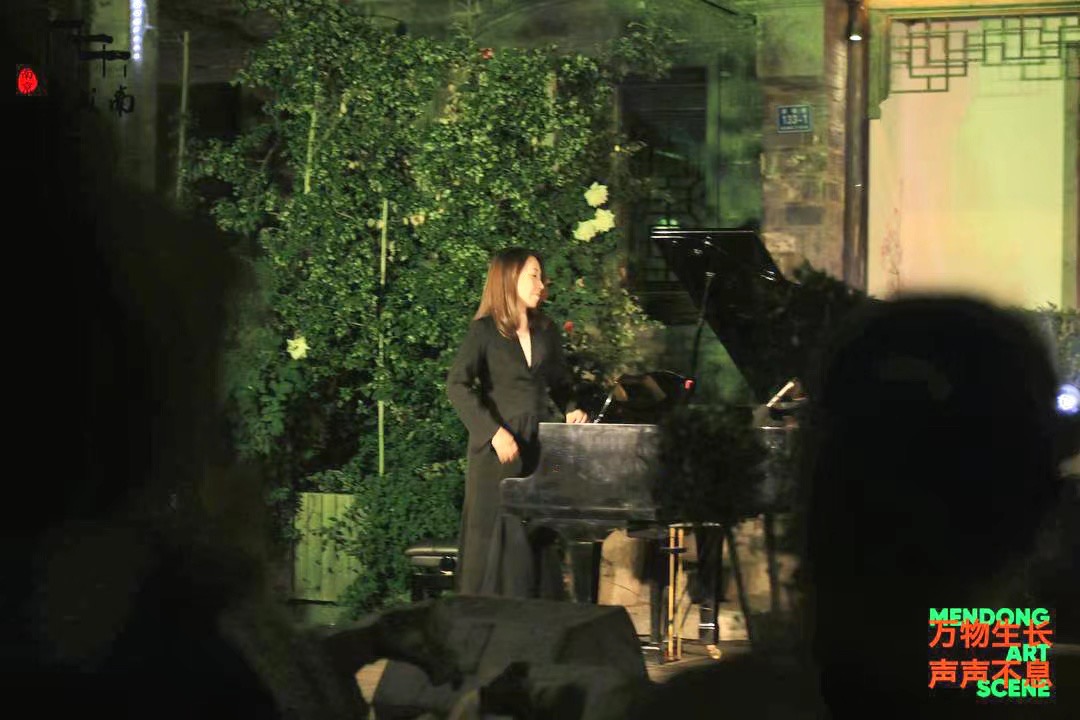 4月21日晚,错落有致的古旧建筑,散发古朴气息的一排排红灯笼,亭台水榭前绚丽的灯光秀,夜间的老门东越发美丽,在门东的城墙下广场、芥子园、小东园等五个标志性经典景点,开启了一场与春天的邂逅,在以600余年明城墙为背景,演绎了由唐婷婷博士创作并参演的声乐弦乐五重奏《夜色》、合唱《总会有一天》,弦乐《星空·花语》、打击乐合奏《追影》等音乐作品,用悠扬的音乐旋律传递精神力量。随后的几天,唐老师和陆老师相继在芥子园、小东园参演了西洋弦乐会、国风民乐会,让西洋弦乐与古典园林碰撞,将民族乐器与青砖黛瓦叠加,探索门东文化融合的更多可能。