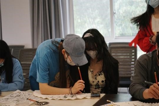 在团学组织成员的组织下,活动如期开展。首先由国画班的洪琬淇、朱婧、邵仪菲同学带领聋人学生们学习扇面绘制,了解绘制的方法、示范绘制的步骤、讲解绘制的要领,分别教授了兰花、荷花、竹子、梅花等图。聋人同学们在宣纸上试着作画,利用自己的感知力,发挥自己的想象力,在残联提供的扇面上绘制了具有中国风的墨色与彩色山水、植物、花鸟等。画面完整,构思巧妙,扇面精美,别具特色,全场氤氲着浓厚的艺术氛围。