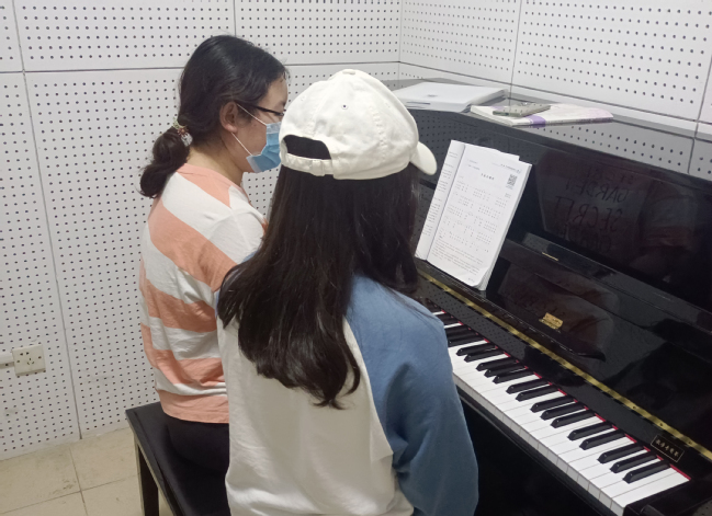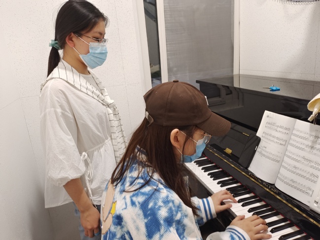 在“友朋相伴、携手共进”学前专业素质帮扶活动中,提供辅导的同学认真负责,精心备课,制定了详细的课程教学计划。琴房里,同学们两人一组,提供帮扶的同学首先进行曲目的教授、示范,重点讲解有难度的小节,将指法清晰地展现出来。被帮扶的同学也十分努力,课上认真做好笔记,练习重难点,课后利用休息时间反复练习课程内容。双方互学互助,携手共进,教学相长,帮扶活动开展几周后双方都取得了很大提升。
