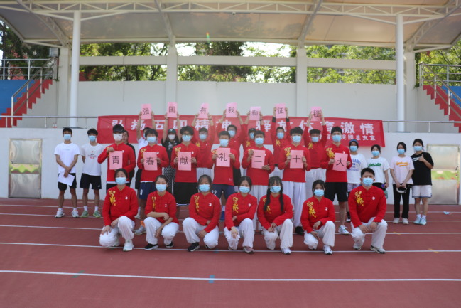 体育2001班团支书夏韩宇洁领诵梁启超《少年中国说》片段,文中描述了中国“前途似海,来日方长”的壮丽前程,也讴歌了中国少年“身似山河挺脊梁”的朝气蓬勃和“今朝唯我少年郎”的奋斗精神。参赛运动员随即齐声吟诵“青春献礼二十大,强国有我新征程”。