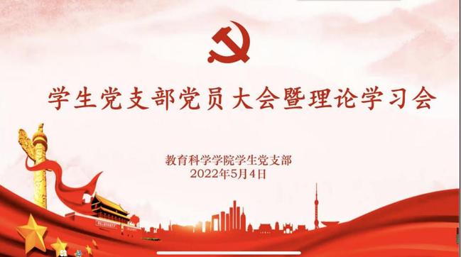 为纪念五四运动103周年,传承五四精神,引导广大党员青年重温党的历史,继承党的优良传统,坚定永远跟党走的信念,以实际行动迎接党的二十大胜利召开,教育科学学院学生党支部于5月4日举行了支部党员大会暨理论学习会,学院党总支副书记吴兴、支部全体党员参会。