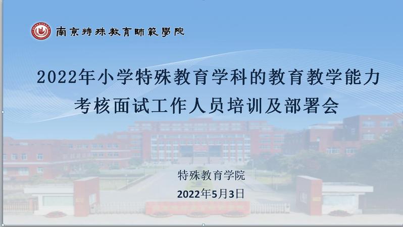 为了落实教育部关于推进师范生免试认定中小学教师资格改革的通知要求,我校开展了2022年小学特殊教育学科的教育教学能力考核工作。5月3日下午15:30校内面试工作小组召开考核面试工作人员培训及部署会。会议由特殊教育学院副院长张伟锋主持。特殊教育学院小学教育系主任赵文超,以及徐琴、孙辰、屈可铮和志愿者等30多名工作人员参加。