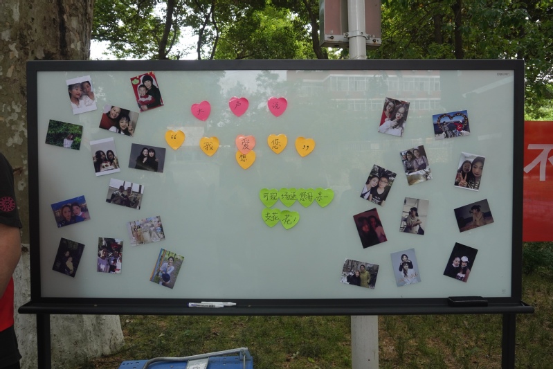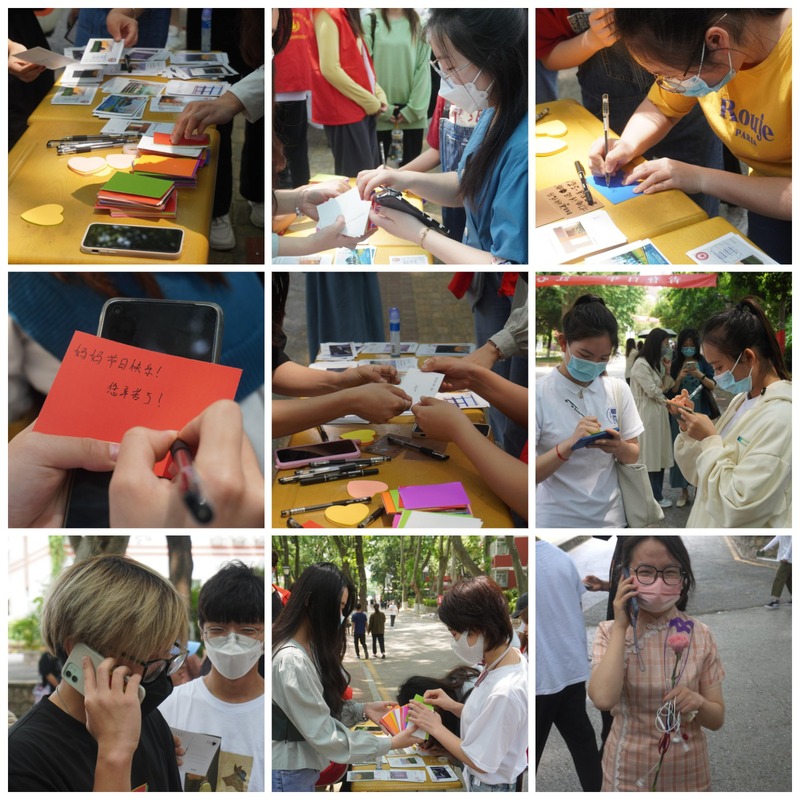 活动现场的留言板吸引了广大师生的驻足留意,同学们均反响热烈,积极参与进来。同学们把自己想对妈妈说的知心话写在贴满便利贴的爱心展板上,或者现场打电话、发信息送上祝福。片刻,展板上贴满了密密麻麻的祝福语:“祝天下母亲天天开心,身体健康!”“祝母亲永远年轻漂亮!”等。留言过后的同学们都获得了一支康乃馨和明信片作为小礼物。虽然语言简洁朴实,但其中却蕴含对妈妈的浓浓爱意。本次活动也达到了教育并引导学生懂得感恩的目标。